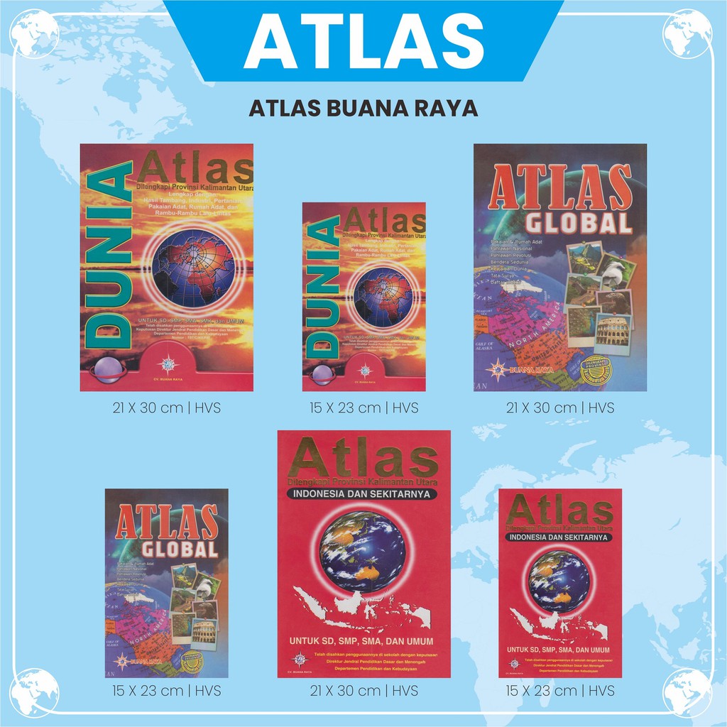 Buku Atlas Dunia Besar-Atlas Dunia Kecil-Atlas Global Besar-Atlas Global Kecil-Atlas Indonesia